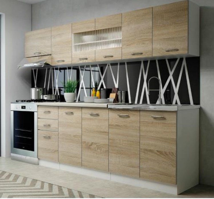 Kuchynská linka Perla 260. Ak ste zástancom klasickej kombinácie Dub Sonoma a biela, tak Perla 260 je moderná kuchynská linka Dub sonoma za skvelú cenu!