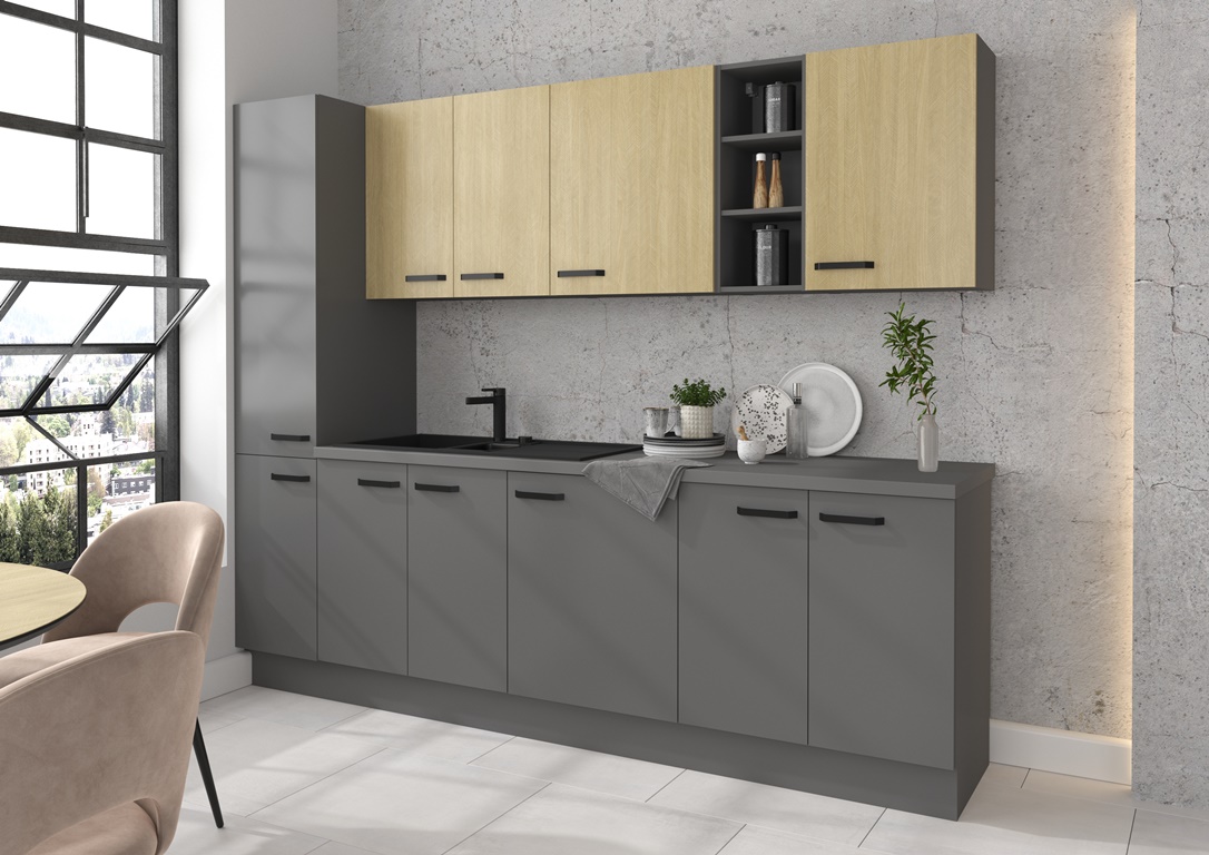 NESSA potravinová skrinka 60 DKS-215 3S 1F. Vysoká skriňa potravinová 1-dverová s 3-zásuvkami zo sektorovej kuchynskej linky NESSA.